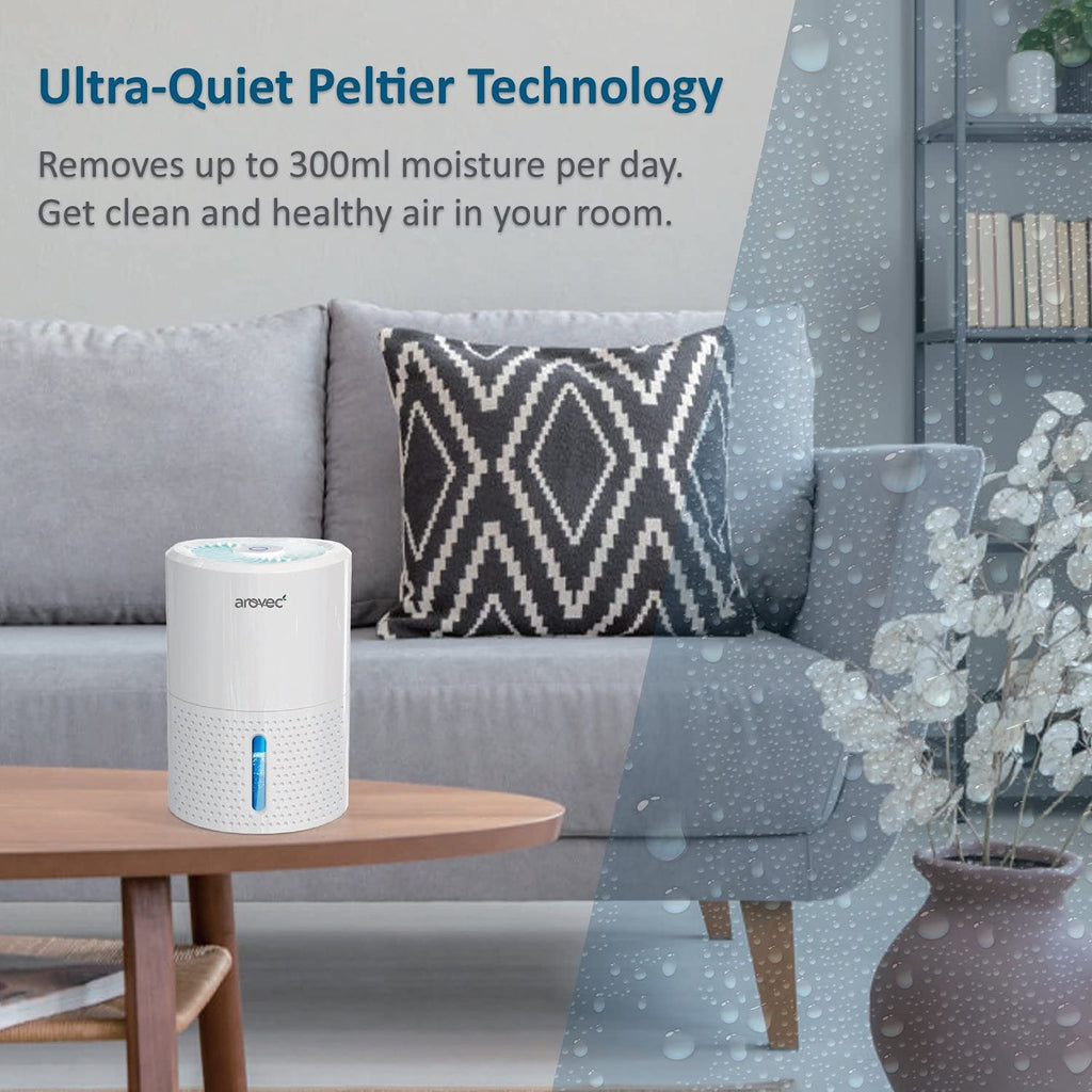 Arovec 900ml Air Dehumidifier with low Energy Consumption & Whisper Quiet Operation. This brand-new dehumidifier from Arovec Australia quickly and efficiently removes moisture from the air. It is perfect for use in small spaces such as your bedroom, Kitchen, basement, garage, caravan, wardrobe or anywhere else prone to high humidity. It utilises advanced Peltier technology which is not only extremely energy efficient but whisper quiet too, allowing you to run it all day and night without any loud or disturbing noises. Breath HEALTHY AIR with AROVEC Air Dehumidifier, IMPROVE INDOOR AIR QUALITY. Features: What you expect from AROVEC Air Dehumidifier