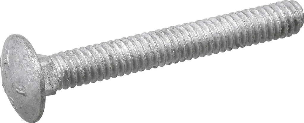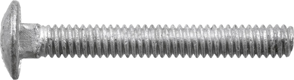 Carriage Bolts are designed to fasten a wooden face to either a wood or metal frame. Its flat head is designed to eliminate the need for a washer and provide a semi-flush finish to applications. The square underside of the head is self locking to eliminate spinning and the need for a driving tool. The galvanized finish provides optimal rust prevention but can be chalky in appearance.