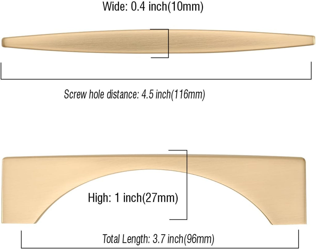 - Size of cabinet hardware: Hole Centers(CC): 3.75 inch(96MM); Overall Length: 4.5 inch(116MM); Height: 1 inch(27MM); Width: 0.4 inch(10MM). Please check the size of the kitchen handle you need carefully before you buy.