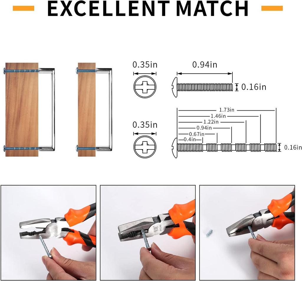- Package Description: You will receive 10 pulls, each with two sizes of screws total 4 screws. 2 decomposable screws that you can cut off into the size you need. The deep thread design makes the handle more Laminated to cabinet , less likely to loosen and thus fall off.