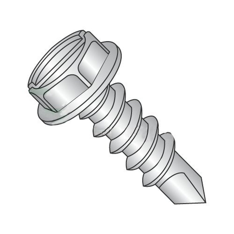 Self-Drilling Screws, #10 x 3/4" Self-Drilling Screws / Slotted / Hex Washer Head / 18-8 Stainless Steel / #3 Drill Point