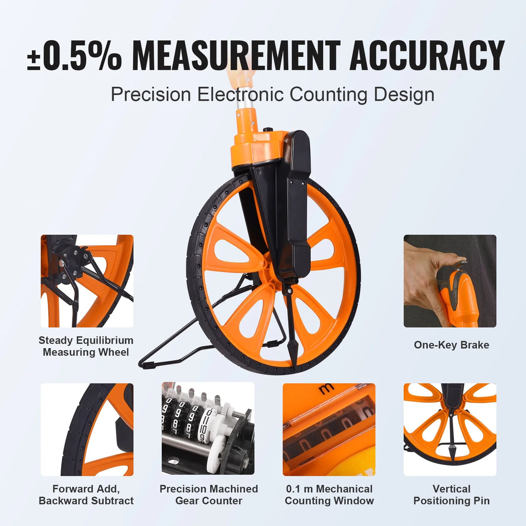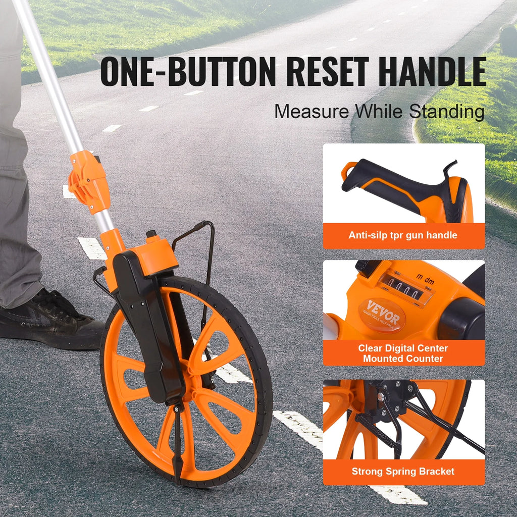 - 12.5-inch Measuring Wheel: Sturdy and durable one-key reset button, enhanced support and joints, rubber tire + ABS wheel frame, wear-resistant, quiet operation, with pointer positioning.