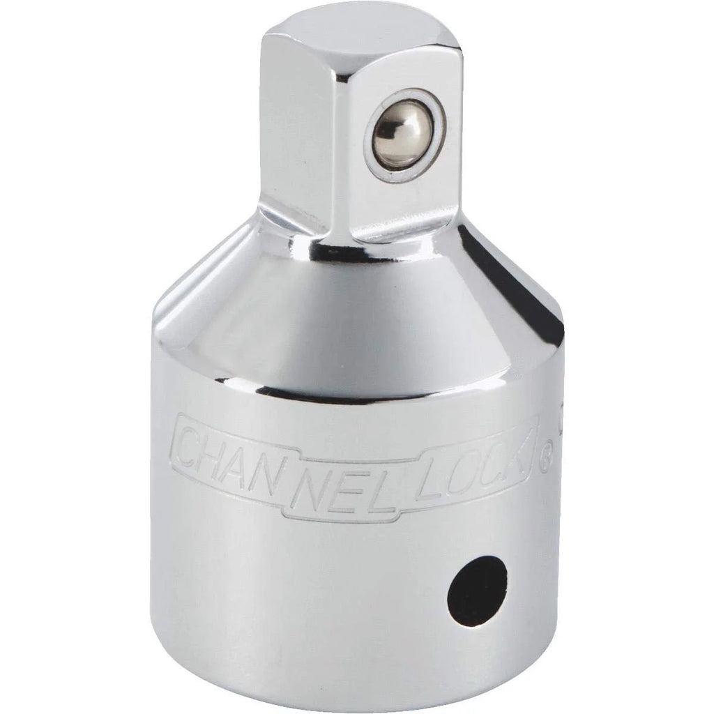 Channellock Socket Adapter - Channellock Socket Adapter features a textured band for improved grip. The chrome vanadium steel provides exceptional strength and durability. The polished chrome finish helps resist corrosion and rust as well as allows for easy dirt and oil cleanup. Complete with a lifetime warranty. - Type: Reducing, Female End: 3/4 In., Male Size: 1/2 In., Finish: Chrome, Pkg Qty: 1, Package Type: Card WARNING: Cancer and Reproductive Harm - www.P65Warnings.ca.gov -