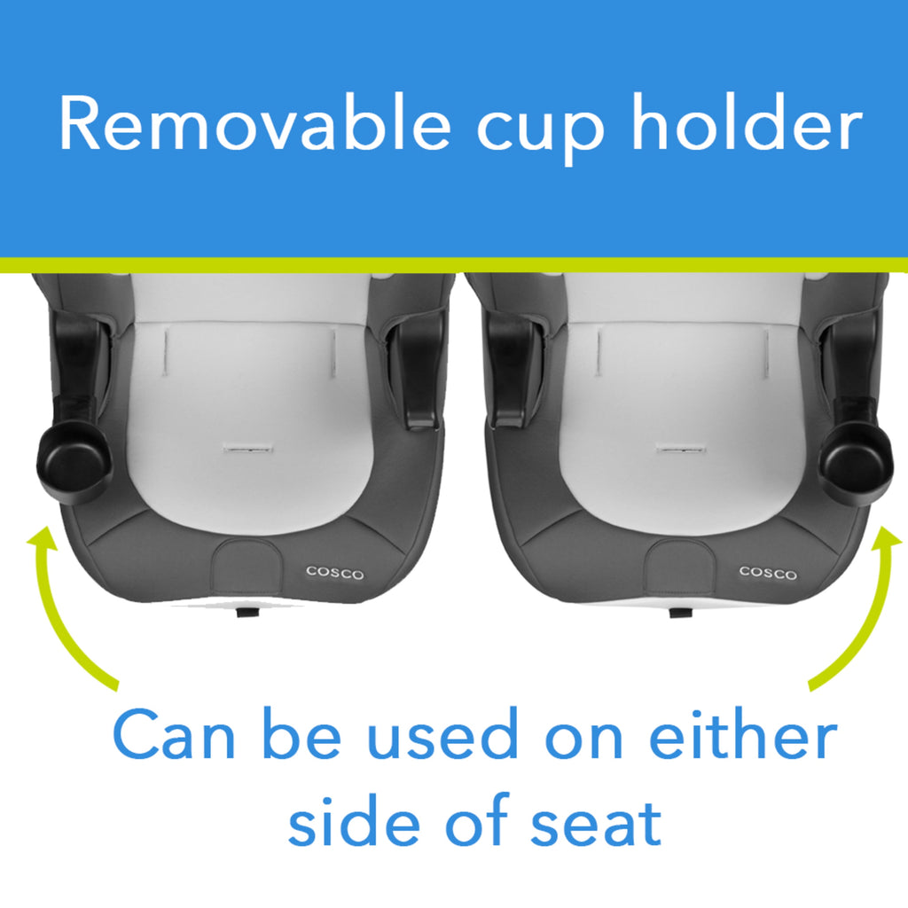 - Dishwasher-safe cup holder detaches for use on either side of seat