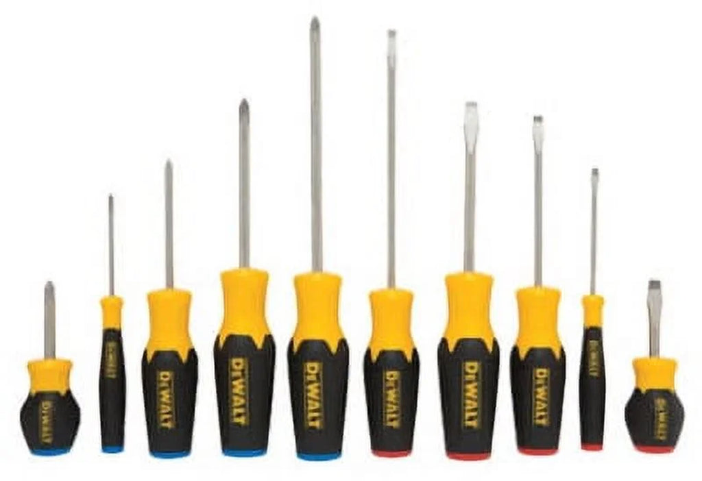 Dewalt; 10 Piece; Screwdriver Set; Magnetic Tip Holds Screw Securely; Color-Coded Handle For Easy Selection; Bi-Material Quad-Lobe Handle For Maximum Torque & Comfort; Precision Sand-Blasted Tip For
