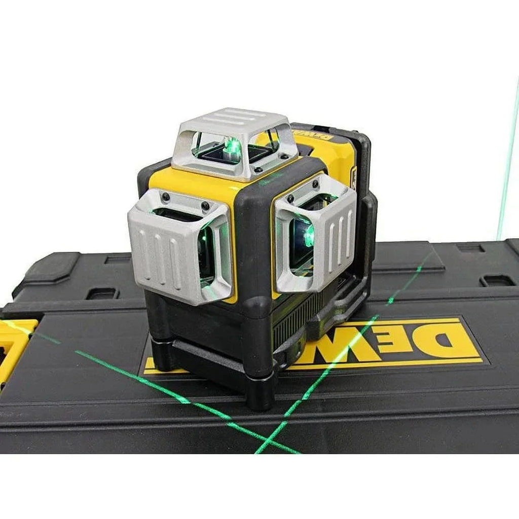 DEWALT DW089LG 12V 3 x 360 Green Beam Line Laser is great for various leveling and layout applications. This unit is used for projecting bright crossing horizontal and vertical lines. It features green beam laser technology which is four times brighter; the green laser diodes are more visible than red and allow for a greater visible range in interior applications along with better exterior visibility. This unit offers (3) 360 degree line lasers to aid in full room layout. A full-time pulse mode allows use with a detector. It also has an integrated magnetic bracket with 1/4" and 5/8" thread, an over-molded housing and IP65 water/debris resistance, along with a lockingpPendulum that helps t prevent damage to internal components. The 12 volt battery compatibility allow for long run times with the convenience of rechargeable power tool batteries. This is a Class 2 laser product, Power output ≤ 1.5mW