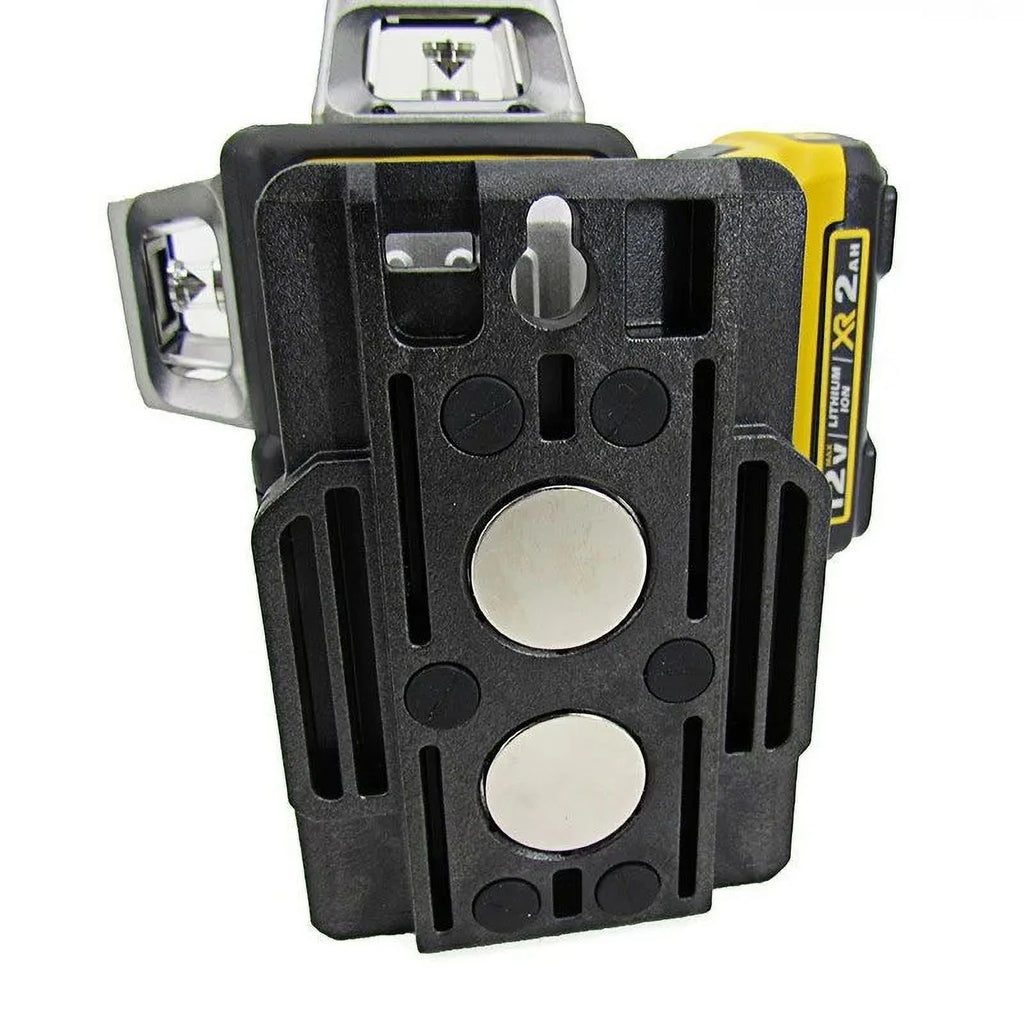 - DEWALT green laser level has integrated magnetic bracket with 1/4-inch and 5/8-inch thread