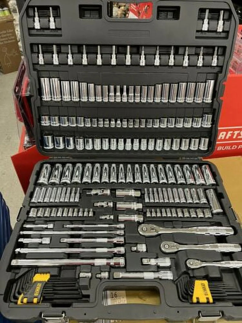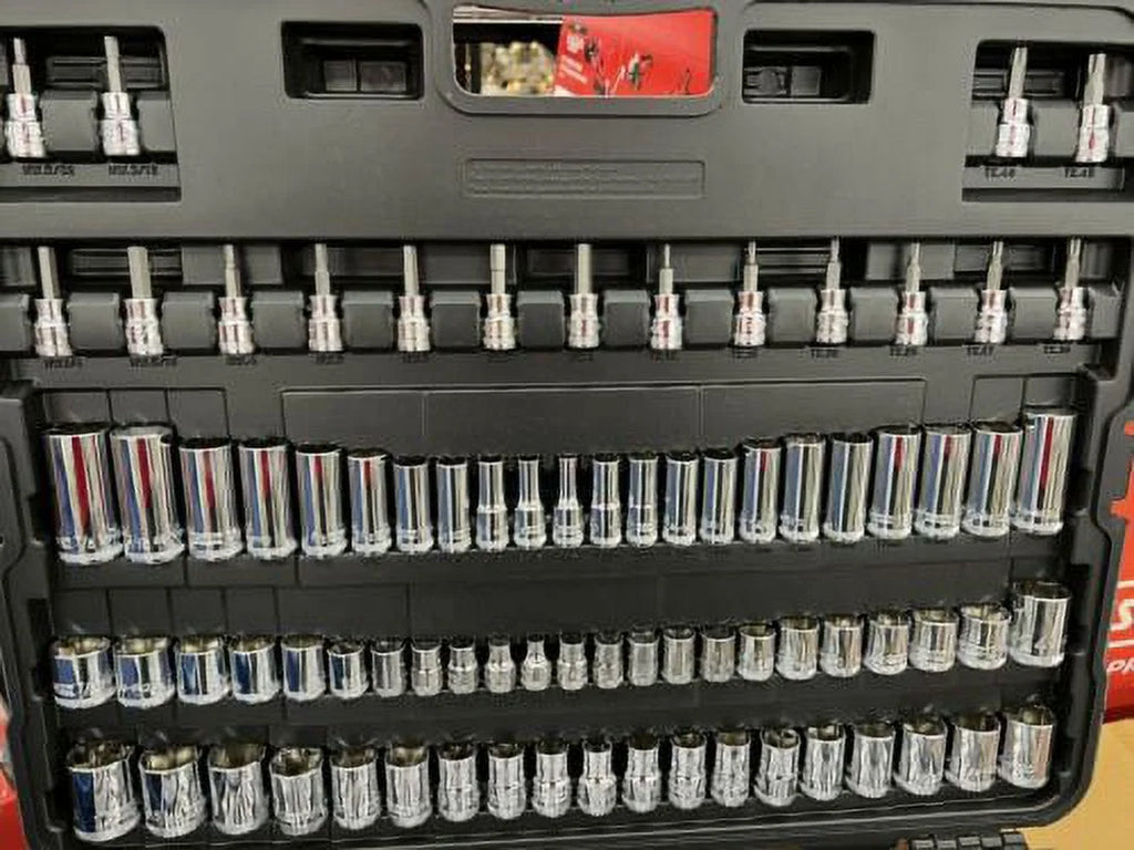 NEW IN PACKAGE UNOPENED FACTORY SEALED 6 Point Deep Sockets SAE 5/32 3/16 1/4 9/32 5/16 11/32 3/8 7/16 1/2 Metric 4 to 14 3/8 in Drive Extensions 3 6 10 3/8 in Drive Hex Bit Sockets 5/32 3/16 1/4 5/16 metric 4 to 8 1/2 in Drive 6 Point Deep Sockets SAE 7/16 1/2 9/16 5/8 11/16 3/4 13/16 7/8 15/16 1 Metric 13 to 19 and 21 22 24 1/4 in Drive Extensions 3 6 10 in 3/8 in x 1/4 in Reducing Adapter 3/8 in Universal Joint 1/2 in Drive Extensions 25 5 10 14 Piece Standard Hex Key Set 1/4 in x 3/8 in Increasing Adapter 1/4 in Drive Universal Joint 3/8 in Drive Spark Plug Socket 5/8 in 3/8 in Drive Spark Plug Socket 3/4 in 3/8 in Drive Spark Plug Socket 13/16 1/2 in Drive Universal Joint 1/2 in to 3/8 in Drive Adapter Chrome Vanadium Number Of Pieces:192