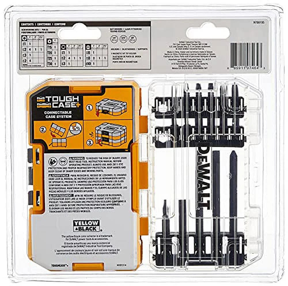 DEWALT Impact Driver Bit Set, This comprehensive set includes the most commonly used bits, made from a special ultra-durable steel that ensures longevity and performance. Each bit features a black oxide finish, enhancing wear resistance and strength, making them ideal for heavy-duty applications. Designed for use with impact tools rated for up to 2,000 in./lbs. of torque, this set offers a versatile selection of tips, including Phillips, square drive, and flat head bits. The DEWALT Impact Driver Bit Set is not only practical but also comes in a tough case for organized storage and easy transport, making it a must-have for any professional or DIY enthusiast.