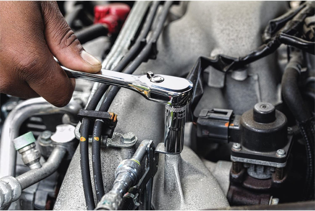 - 72 tooth count ratchet providing a 5 degree arc swing for maneuverability in restricted areas