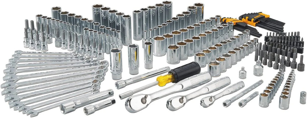 This 205 piece tool set includes the ratchets and sockets you need for almost any mechanical job. Tool sets for mechanics come with a bit driver, specialty and nut bits, combination wrenches, and hex keys. The set comes in a durable carrying case with metal latches for security. These tools for men are built to meet the demands of hard-working professionals with a full-polish finish that provides corrosion resistance.