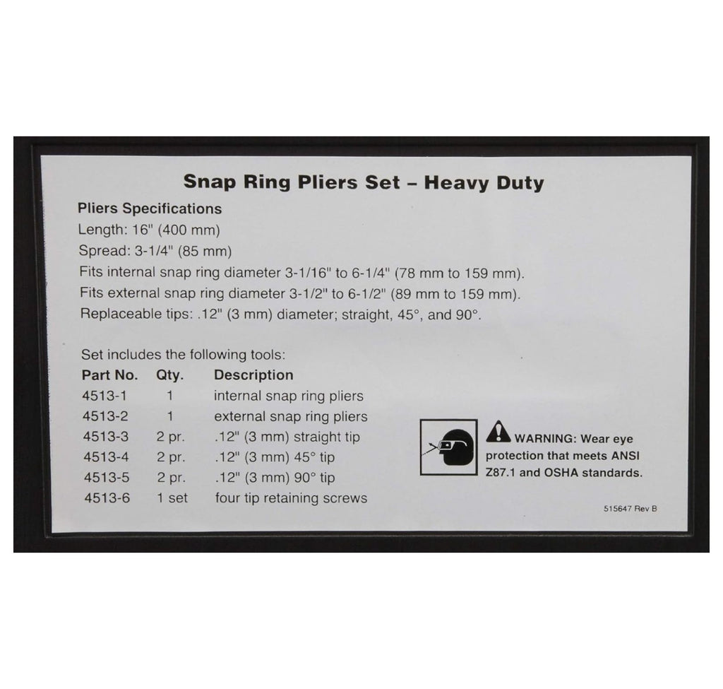 - Rugged design features replaceable tips and a spring ratchet locking mechanism to securely hold against snap ring tension