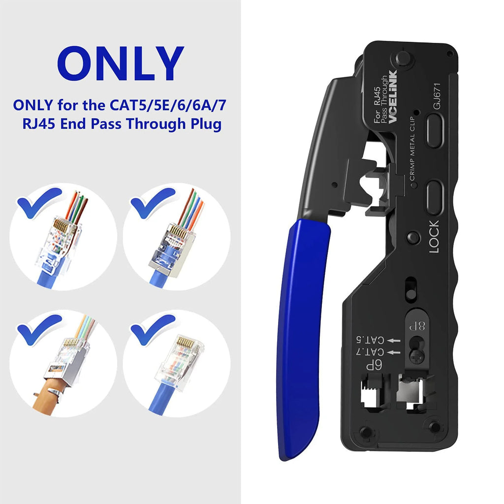 - It is suitable for CAT7/6/5 and RJ11/12 shielded modular plugs, as well as pass-through modular plugs.