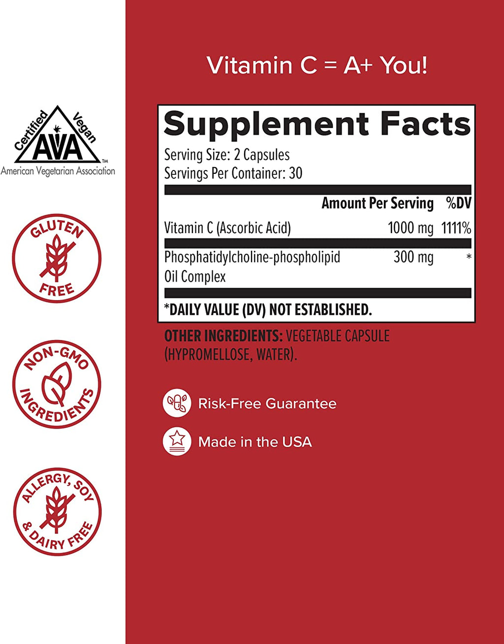- SKIN & BONE SUPPORT – Vitamin C supports bone health and density, and also skin health by functioning as an anti aging solution to protect the face from spots caused by UV damage, along with wrinkles and a loss of derma elasticity.