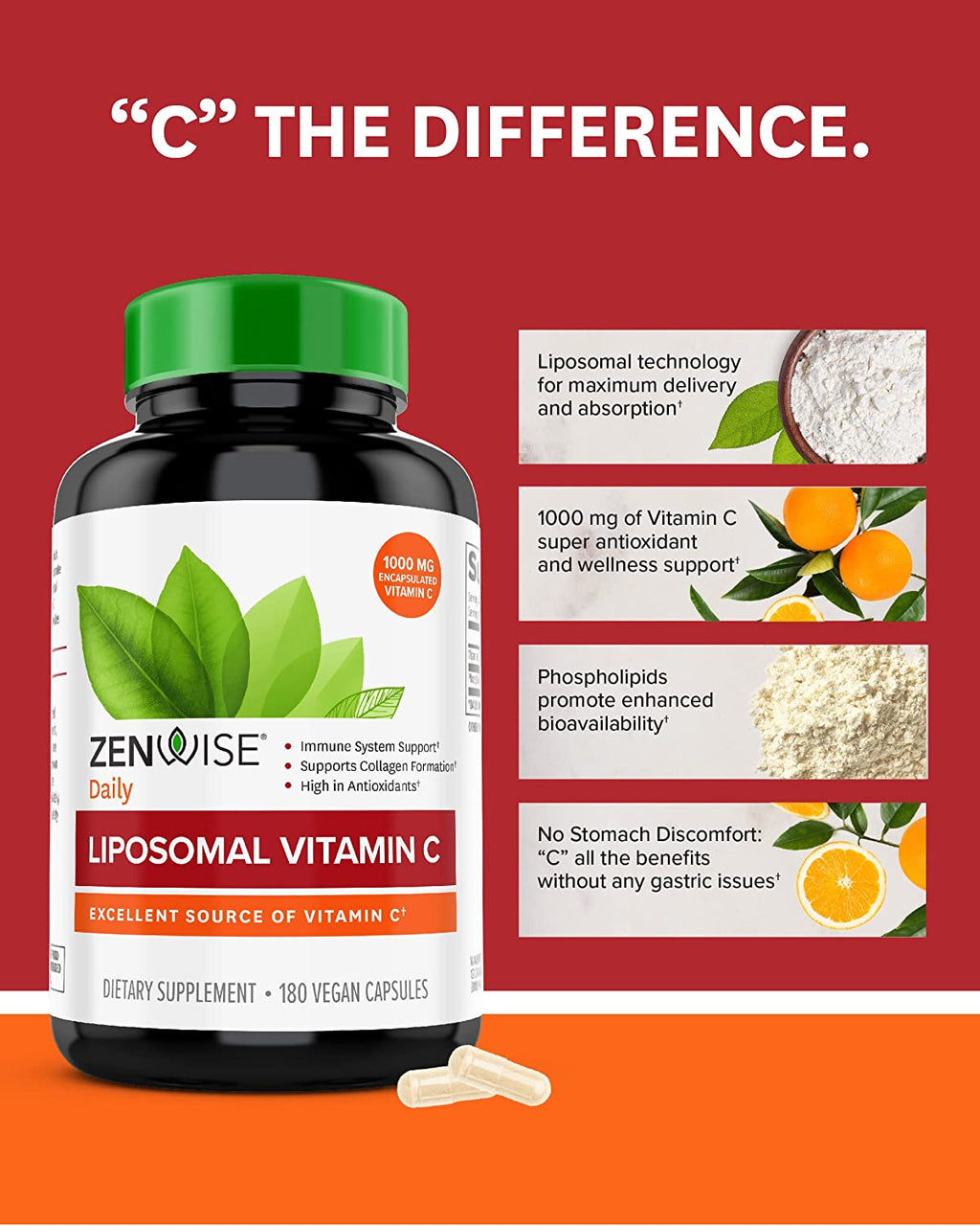 - LIPOSOMAL VITAMIN C FORMULA – Zenwise Health Liposomal Vitamin C uses liposomal technology to provide a highly bioavailable form of Vitamin C, which can help men and women enjoy all Ascorbic Acid benefits with no digestive discomfort.