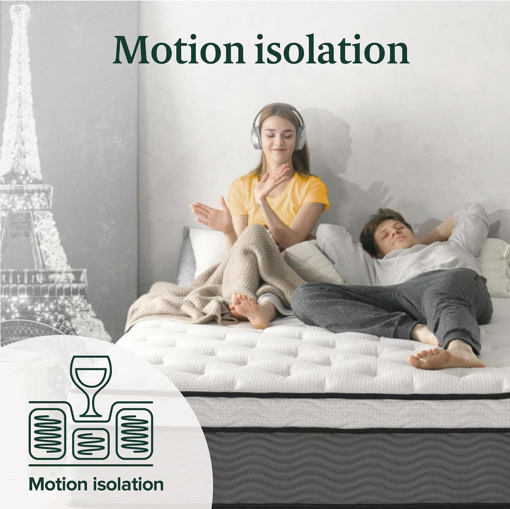 - CUSTOM COMFORT – Individually wrapped coils topped with conforming layers of not-too-soft comfort foam provide motion isolation and the perfect level of pressure relief for you as you rest